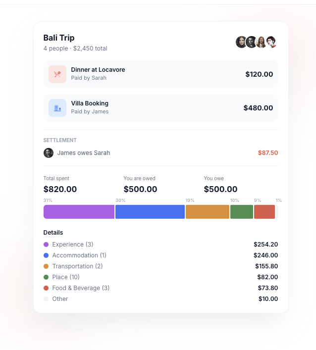 - Splitwise-level expense splitting